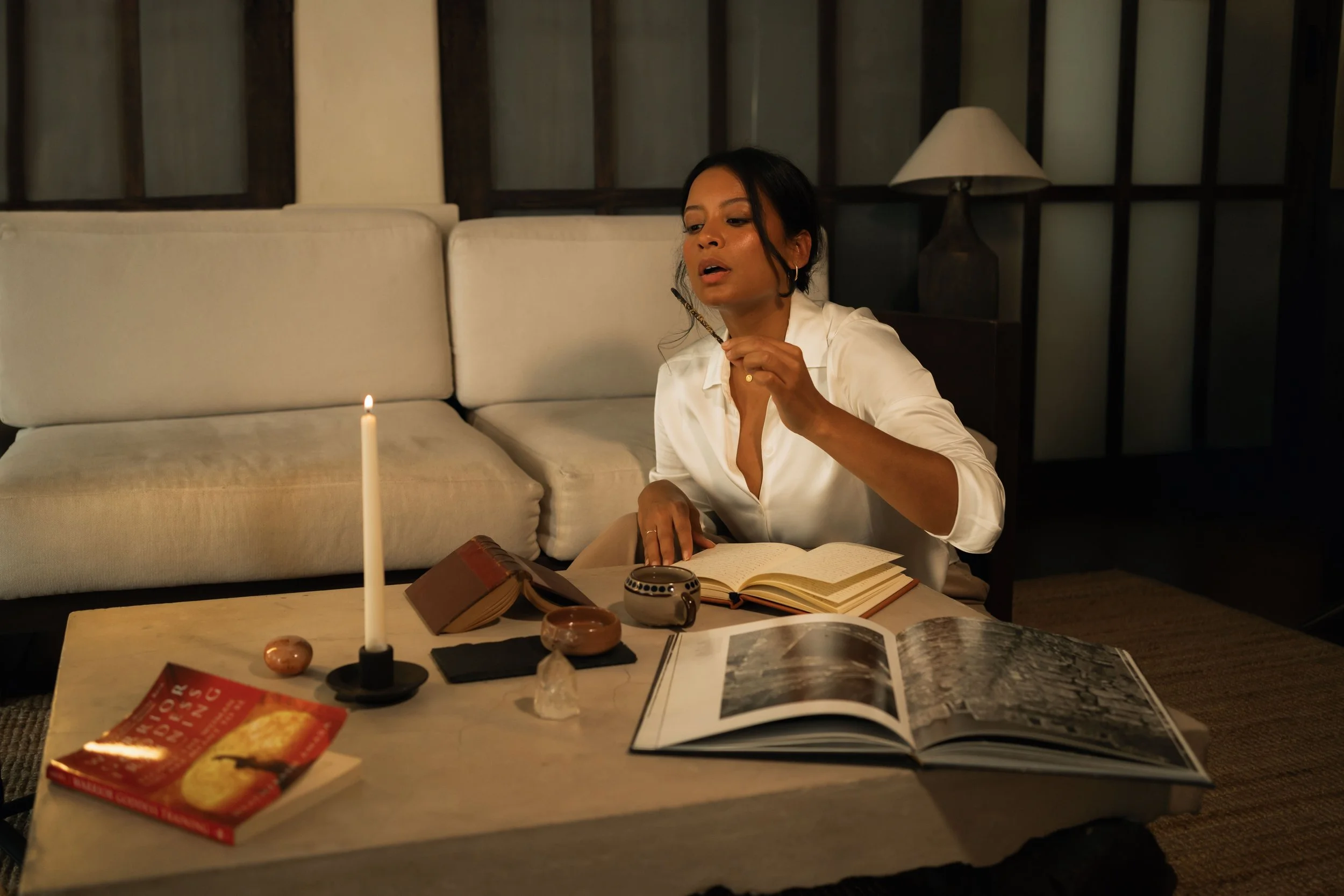 The library weaves together neuroscience, psychology, trauma-informed somatic work, ritual, and ancestral healing into one coherent system. These are the same practices used in my private mentorship and group programs, refined through work with hundreds of women.